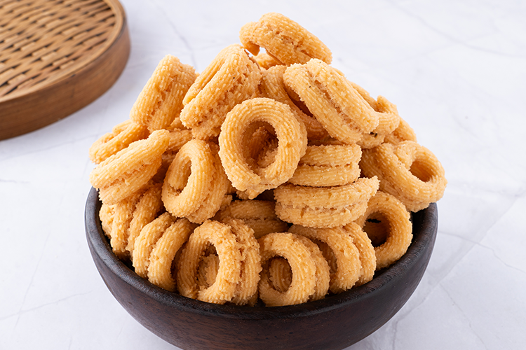 Bite into the crispy and Savory deliciousness of Ring Murukku, a beloved South Indian delicacy crafted from a delightful amalgamation of rice flour, urad dal flour, and a medley of aromatic spices. Whether enjoyed as a standalone snack or as a flavorful crunchy topping, Ring Murukku will tantalize your taste buds.